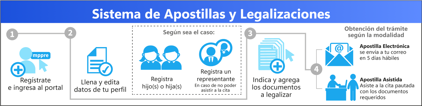 Para legalizar o apostillar un documento es indispensable crear una cuenta de usuario en el módulo de Registro del portal web del Sistema de Legalización y Apostilla Electrónica (SLAE), a través de 3 simples pasos. (Ver imagen).